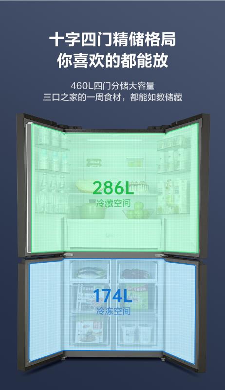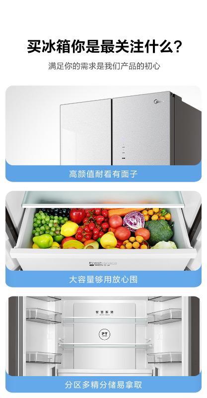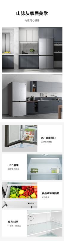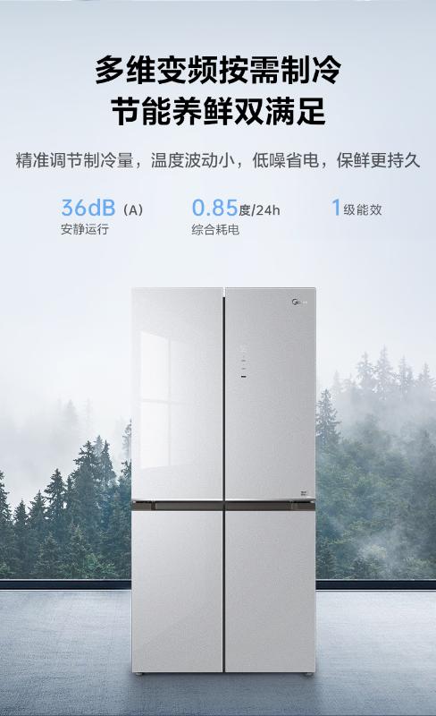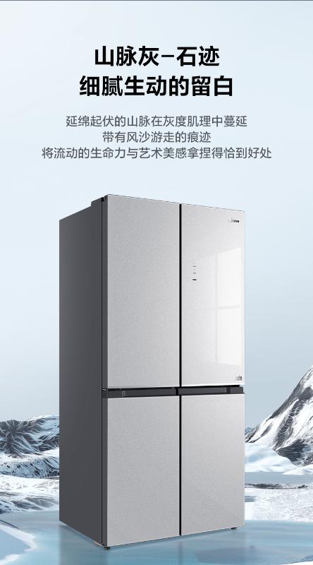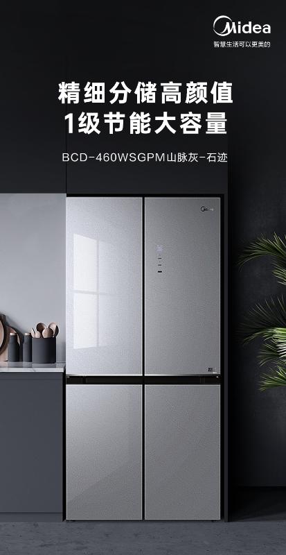 美的十字四门冰箱BCD-460WSGPM山脉灰-石迹