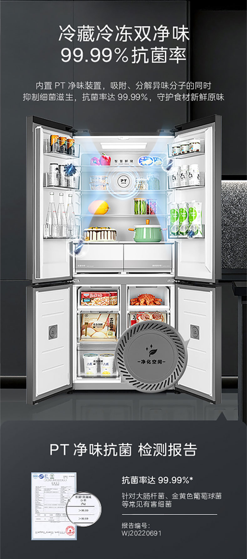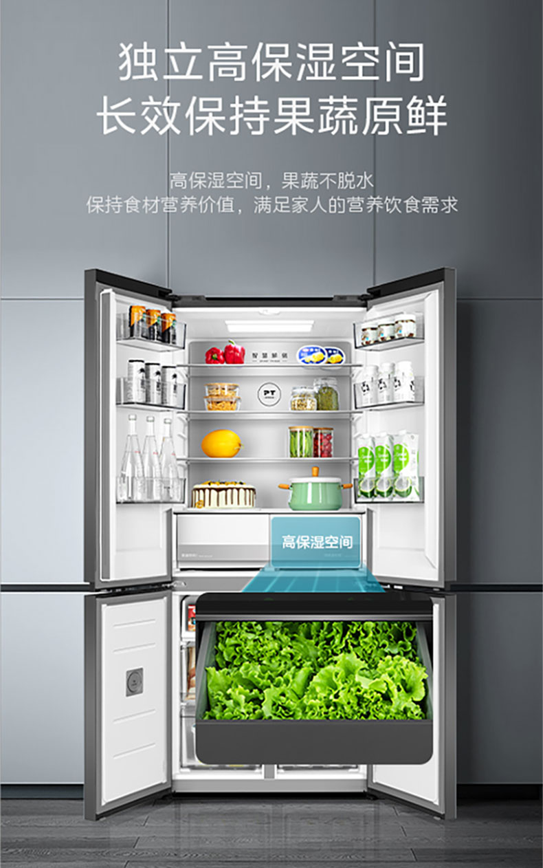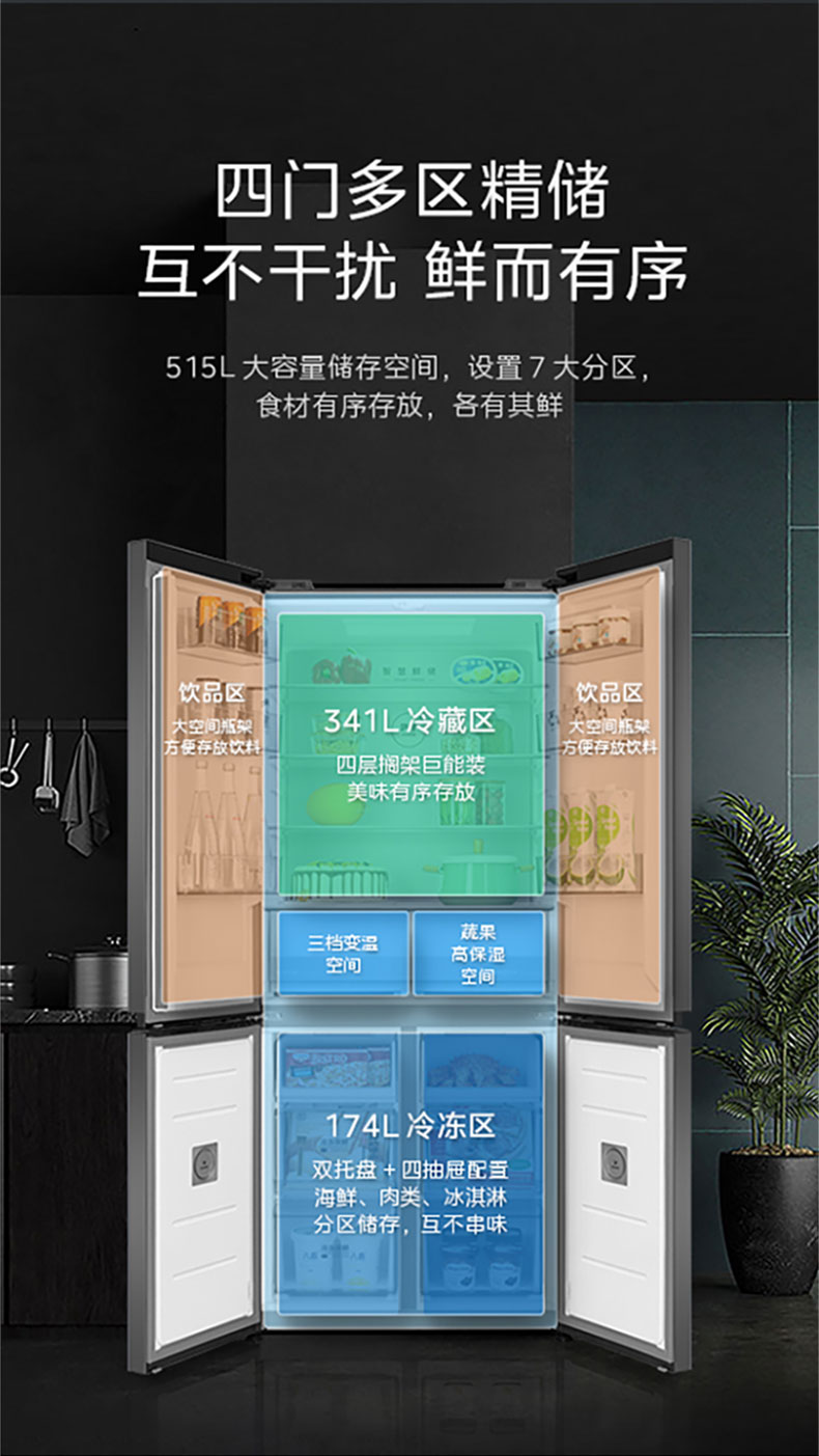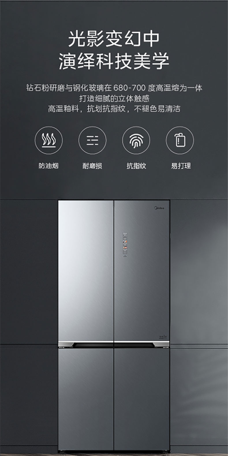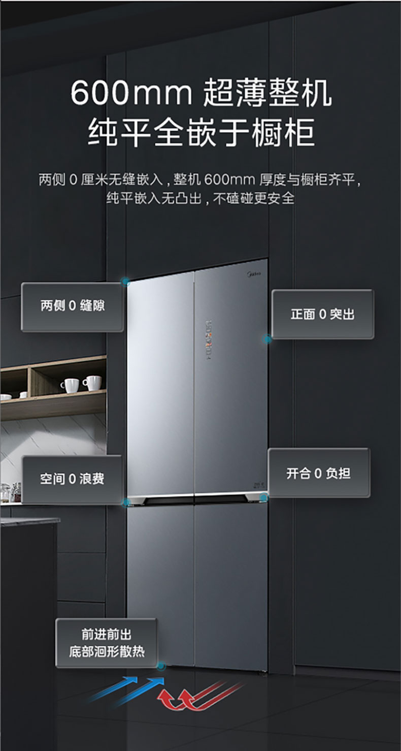 美的十字四门全嵌冰箱BCD-515WUSGPZM丝雨灰(超薄全嵌)