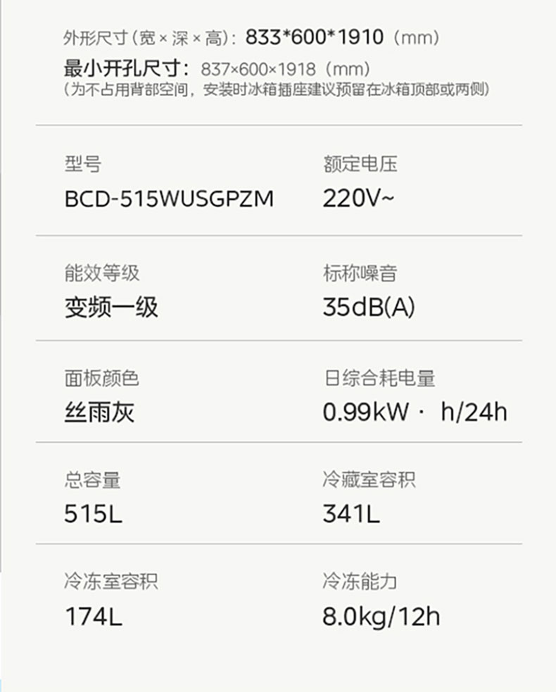 型号:BCD-515WUSGPZM