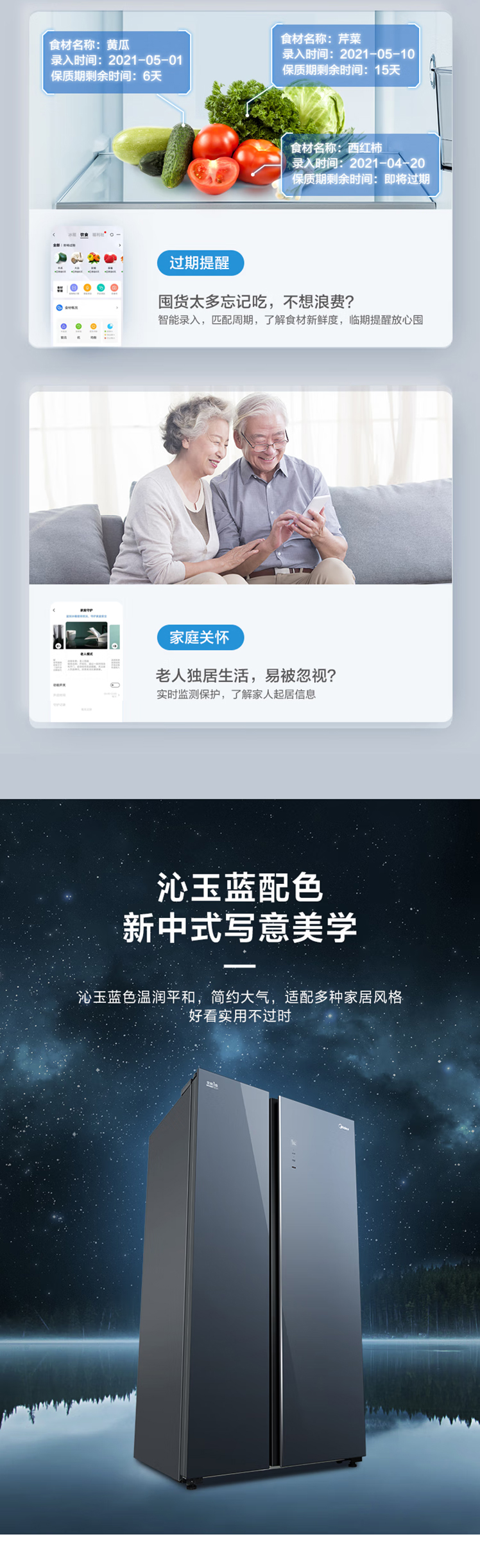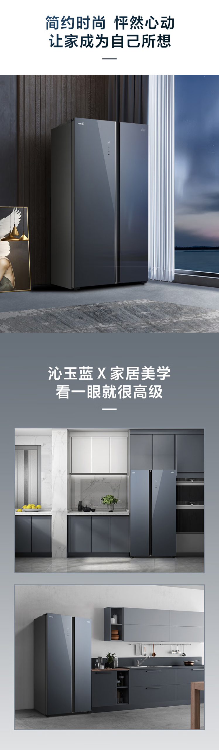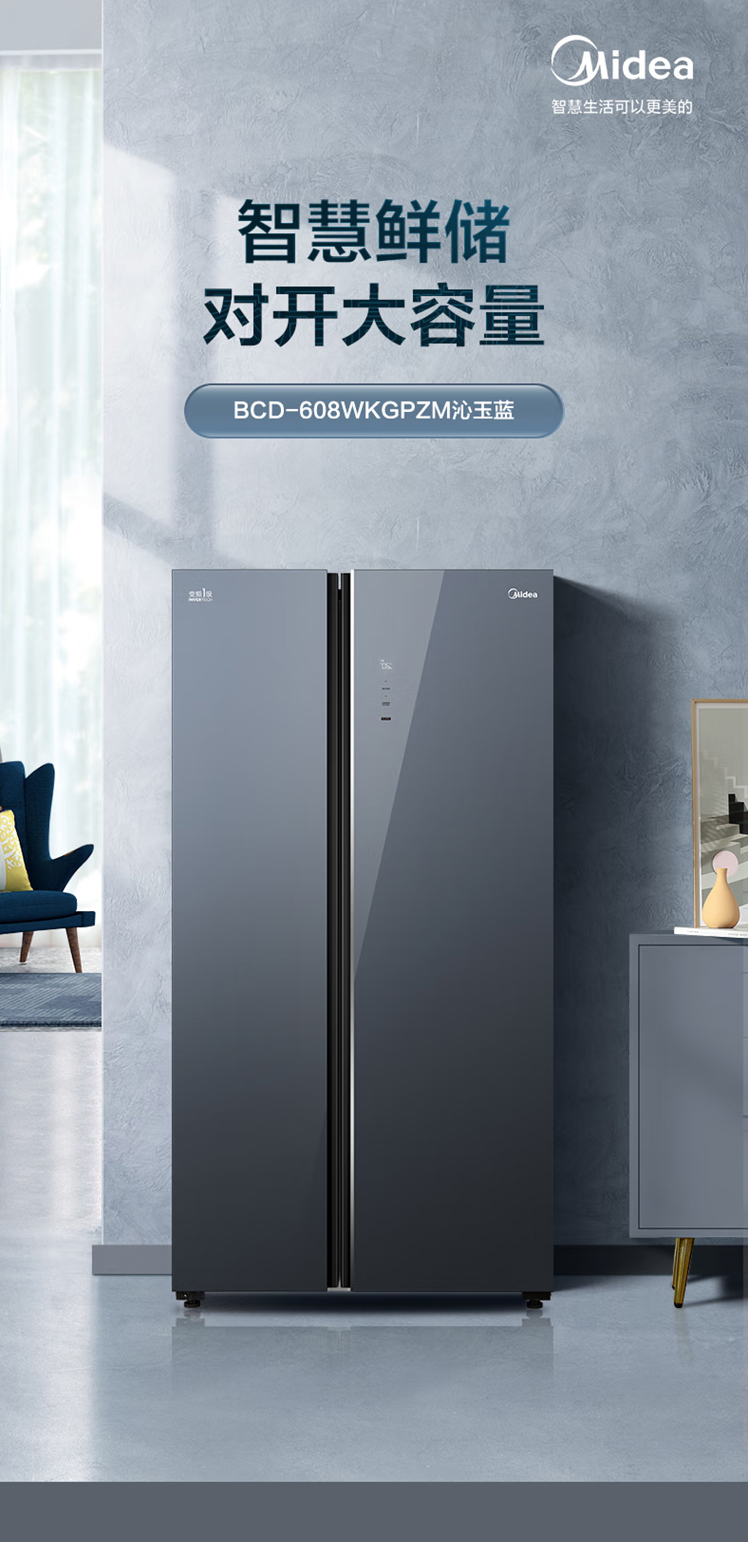 美的对开门冰箱BCD-608WKGPZM沁玉蓝