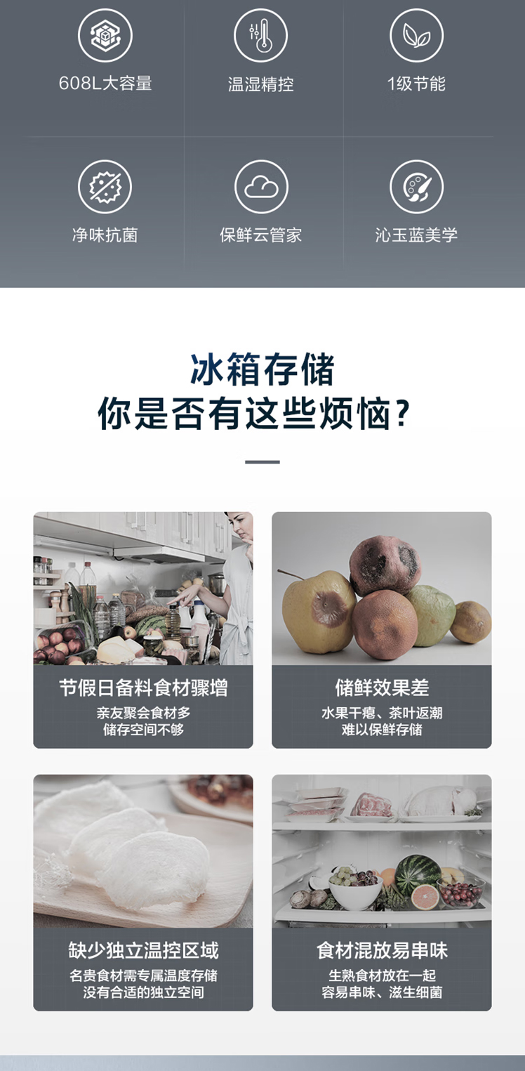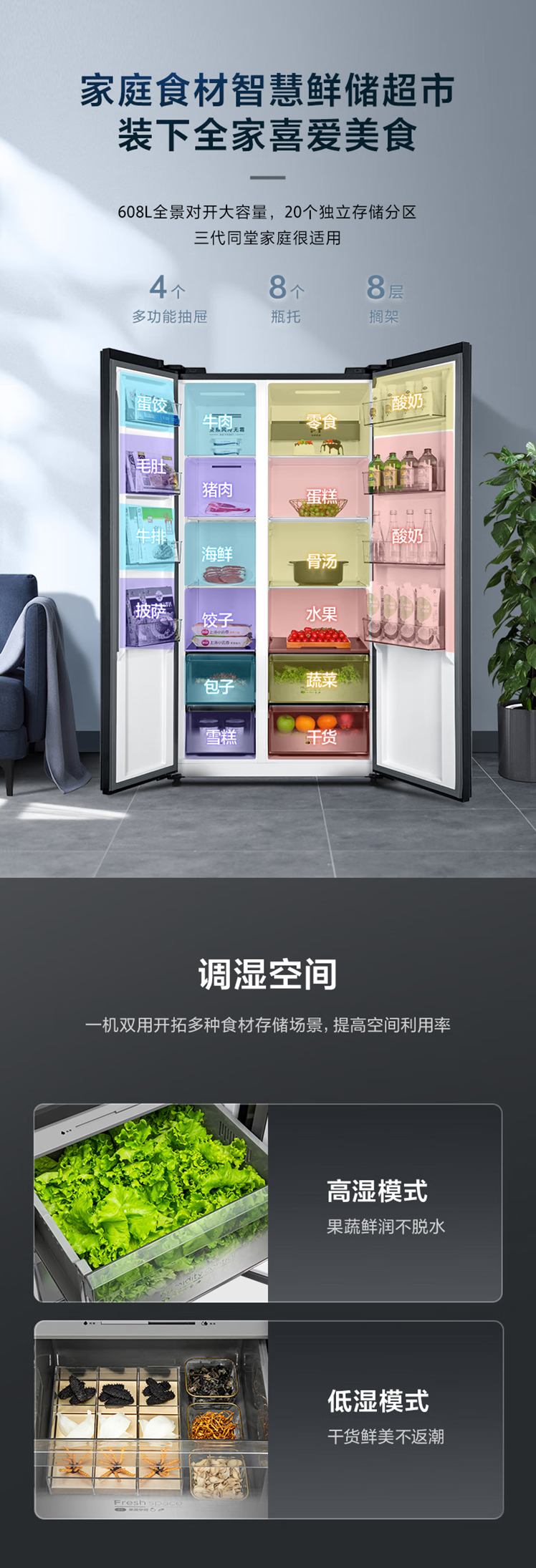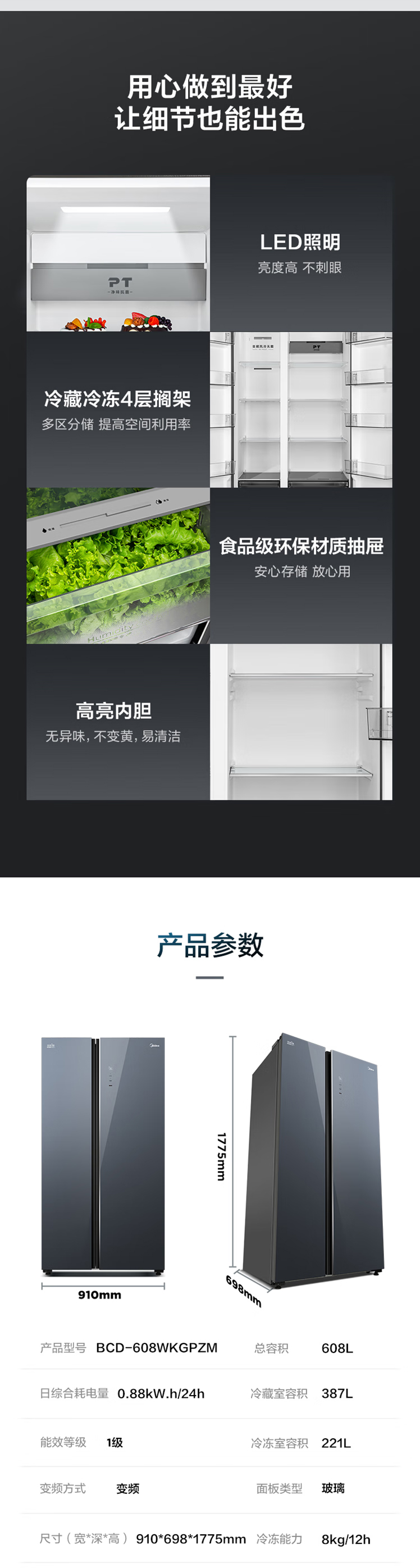 美的对开门冰箱BCD-608WKGPZM沁玉蓝