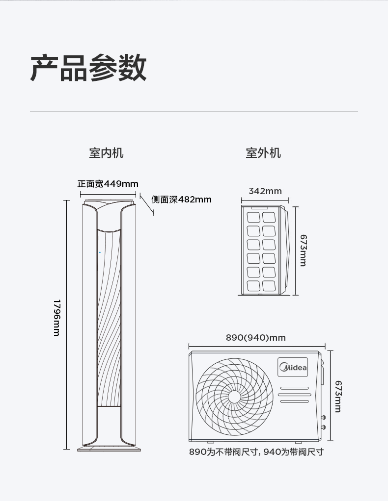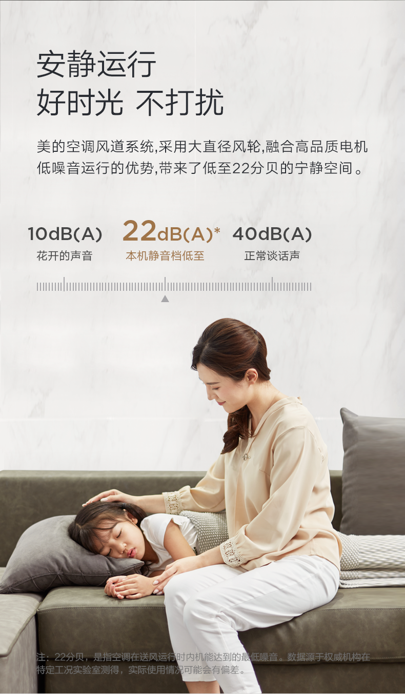 室内机噪音dB(A) 22-42-47 (低-高-较高)