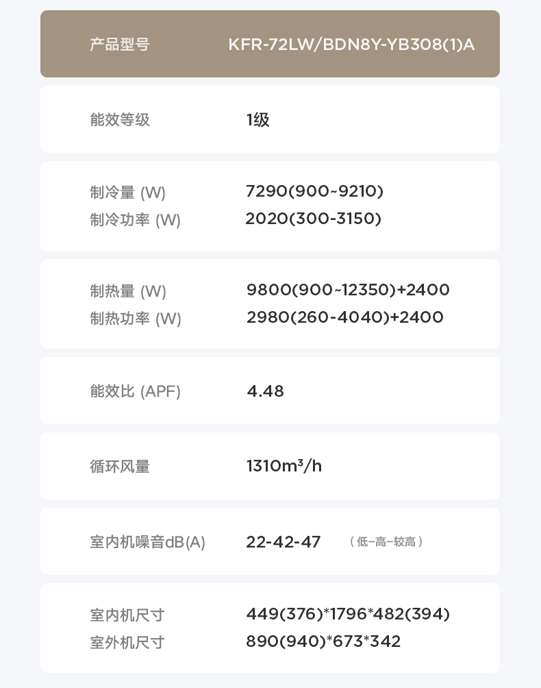 产品型号 KFR-72LW/BDN8Y-YB308(1)A