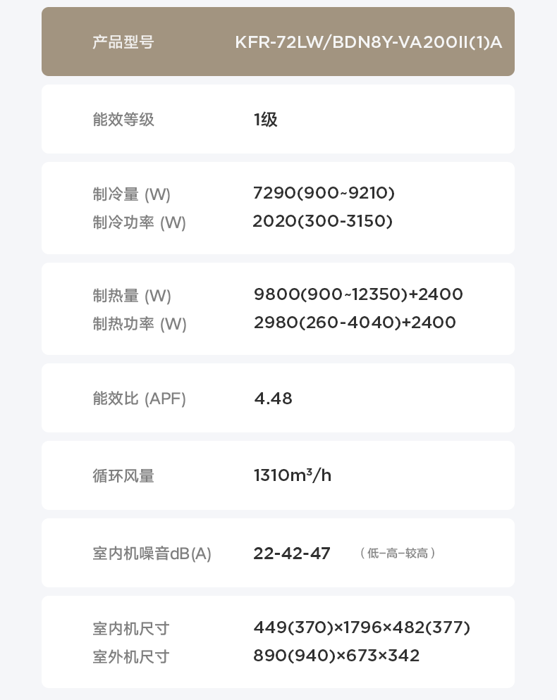 产品型号:KFR-72LW/BDN8Y-VA200II(1)A
