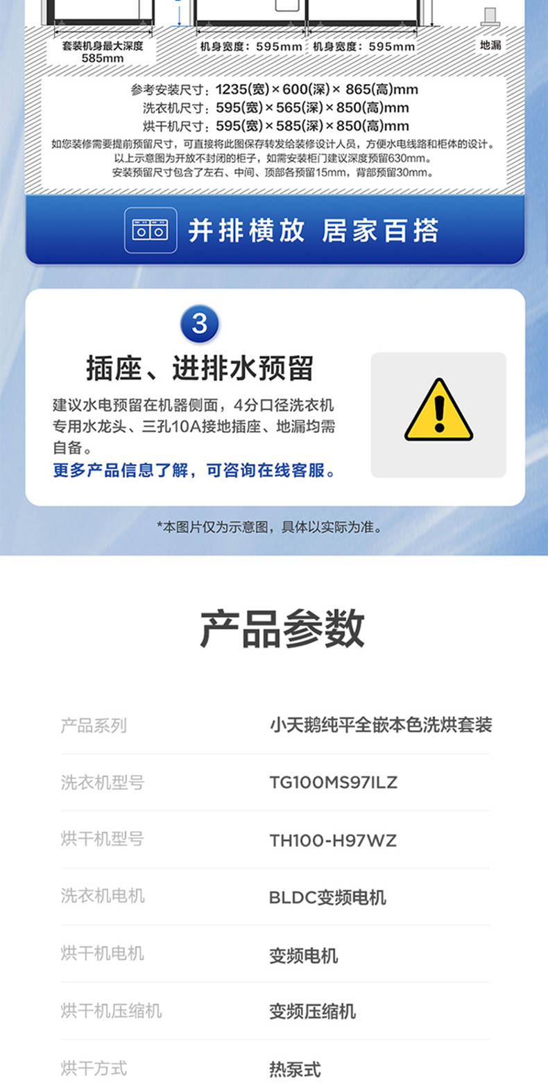 小天鹅纯平全嵌洗烘套装TG100MS97ILZ+TH100-H97WZ