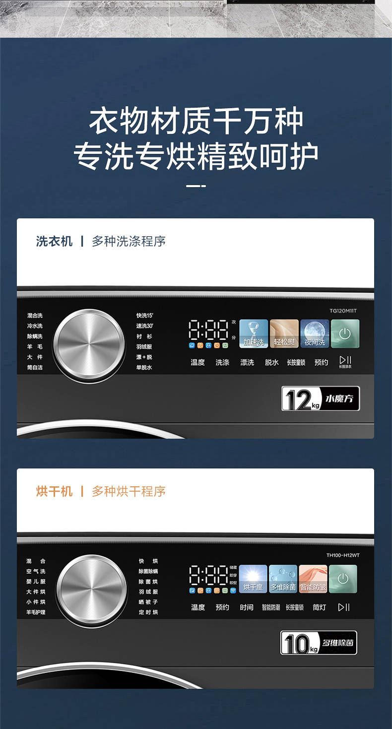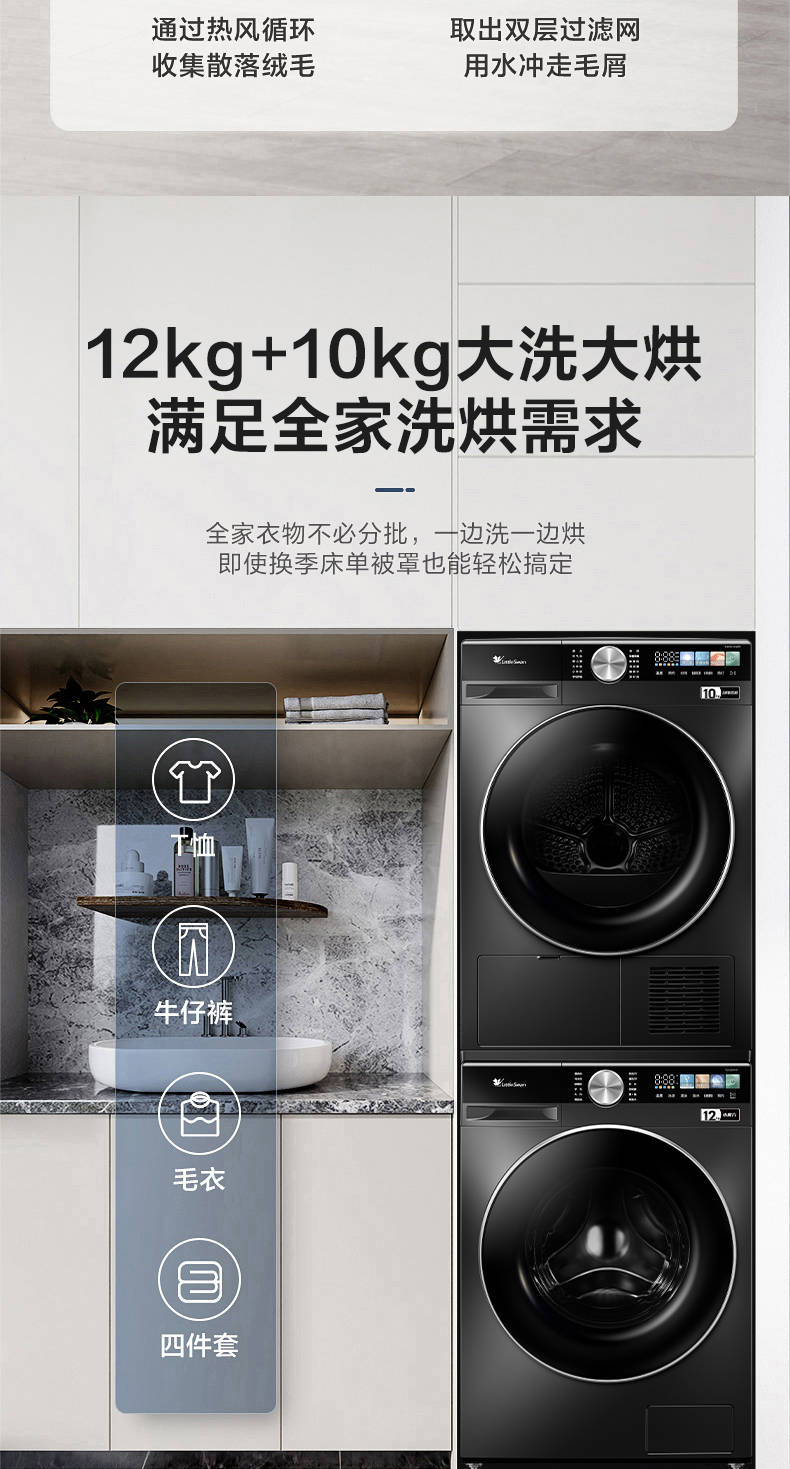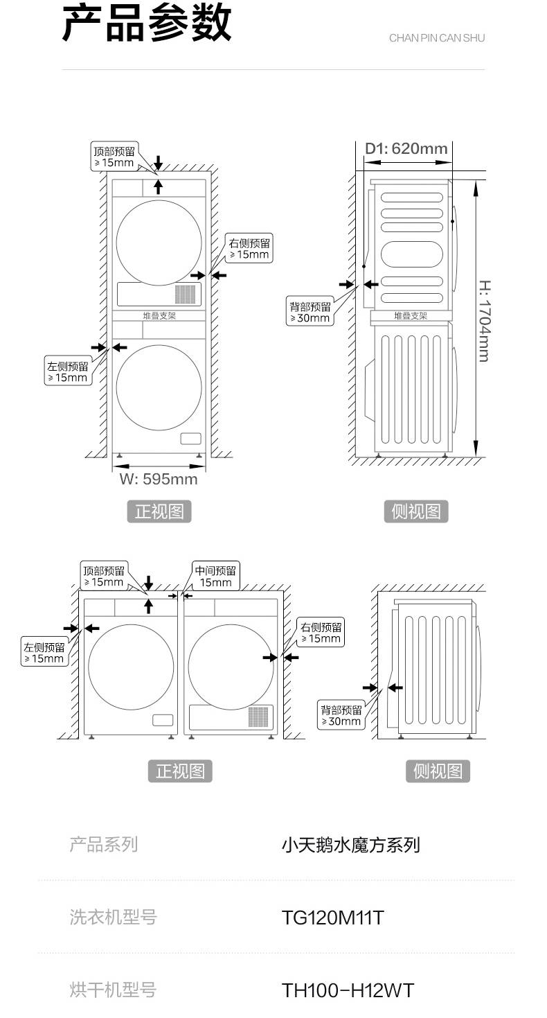 小天鹅洗烘套装TG120M11T+TH100-H12WT